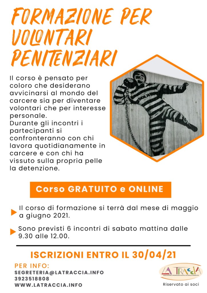 E’ uscito la scorsa settimana il calendario completo e i temi del CORSO DI FORMAZIONE PER VOLONTARI PENITENZIARI. Eccolo di seguito: